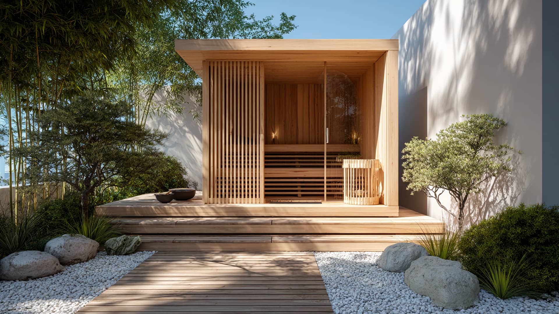 庭サウナは、柔らかな蒸気に包まれながら心と体を静かに整える上質なリカバリー空間。 外気浴とともに深いリラクゼーションが巡り、日常をそっとリセットして明日への活力を与えてくれます。
