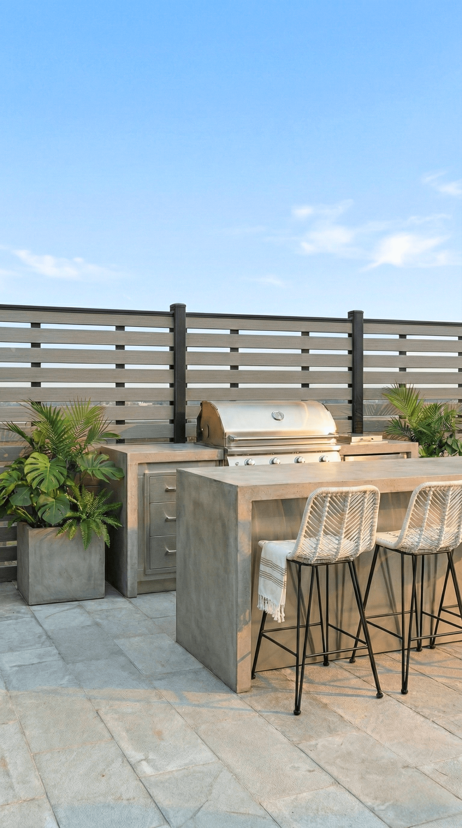 植栽やテラスと自然に溶け込み、外構全体の雰囲気を整えます。