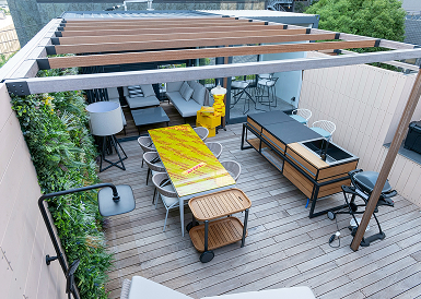 ZOUSの屋上ショールームは、都市の中で新しいアウトドアスタイルを体験できる“アーバンアウトドア”の提案拠点です。これまで活用されてこなかった屋上空間を最大限に活かし、心地よい日常を演出します。